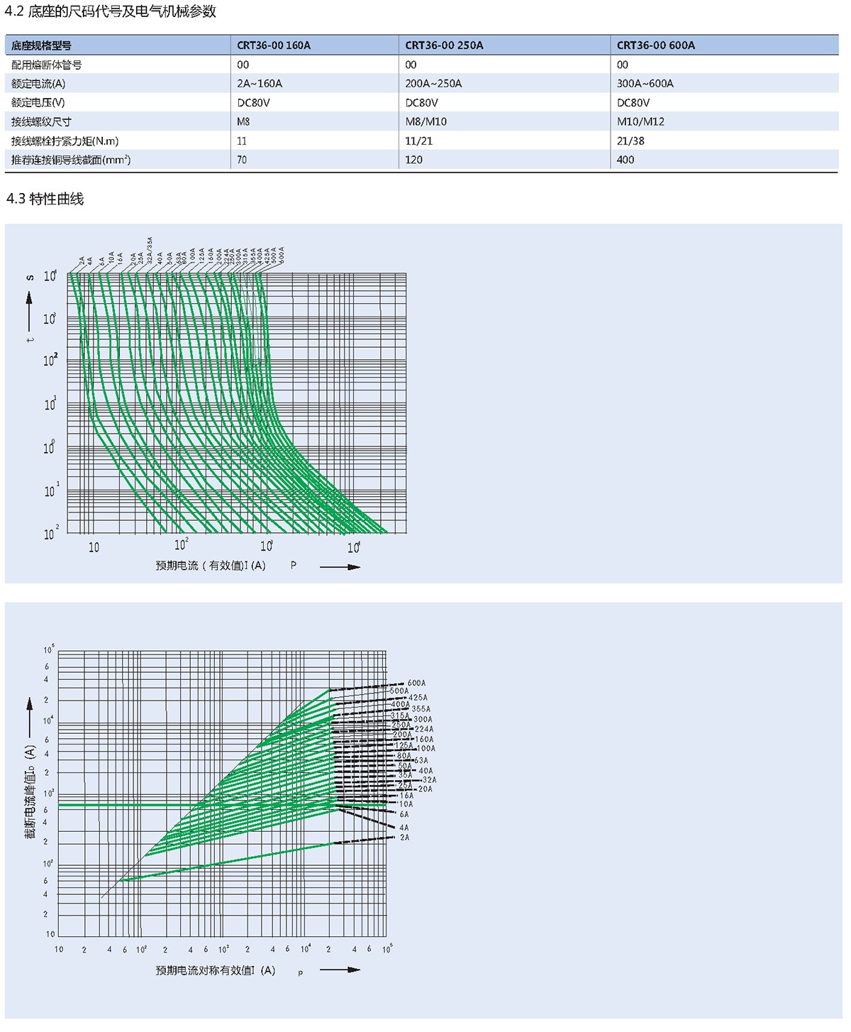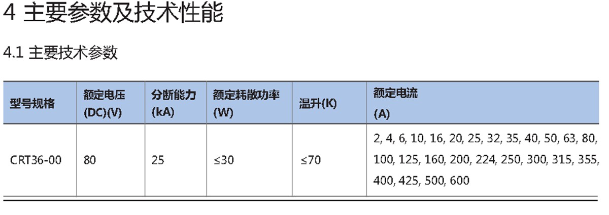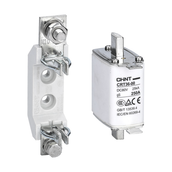 CRT36-00系列直流熔断器适用于额定电压不超过直流80V,额定电流不超过600A,额定分断能力不超过25kA的配电线路中的短路保护。