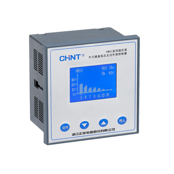 NWK1系列中文液晶低压无功补控制器采用手机菜单操作模式,实现人机交换,适用于电网的配电监测和共补、分补兼顾的无功补偿。它采用ASIC处理芯片,通过FFT(快速傅立叶计算)对采集的三相电压和三相电流进行计算和分析,故在电网有较大的谐波分量下,能够正常以无功功率作为投切电容器的依据,并结合功率因数进行投切。电容容量可按循环、编码或任意值组合,进行对单相或三相电容的匹配或投切,实现最优的补偿效果,是我公司新推出的新一代智能无功补偿控制器。