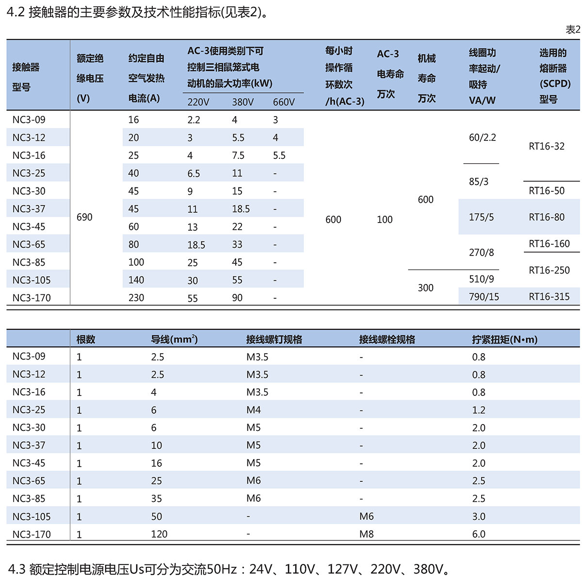 NC2系列交流接触器(以下简称接触器),主要用于交流50Hz或60Hz,额定工作电压至690V,额定工作电流至800A的电路中,供远距离接通和分断电路之用,并可与适当的热过载继电器组成电磁起动器,以保护可能发生操作过负荷的电路。