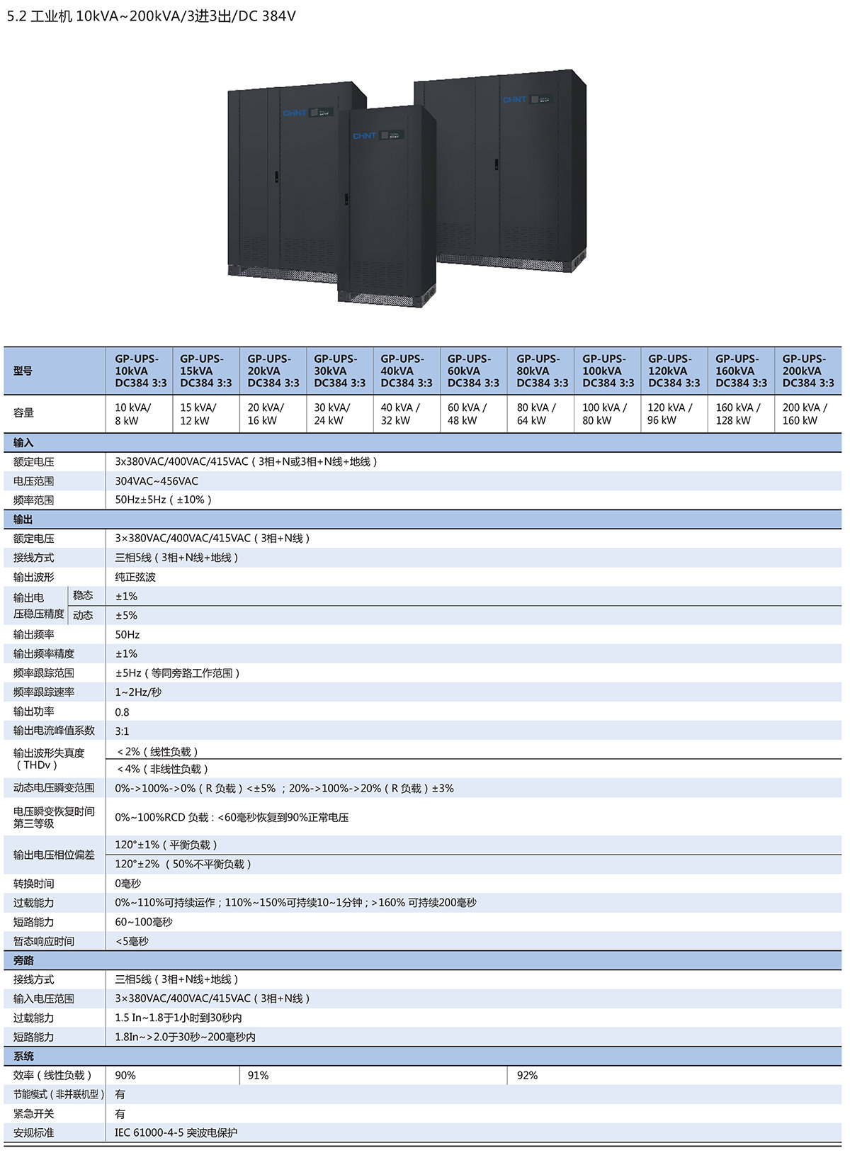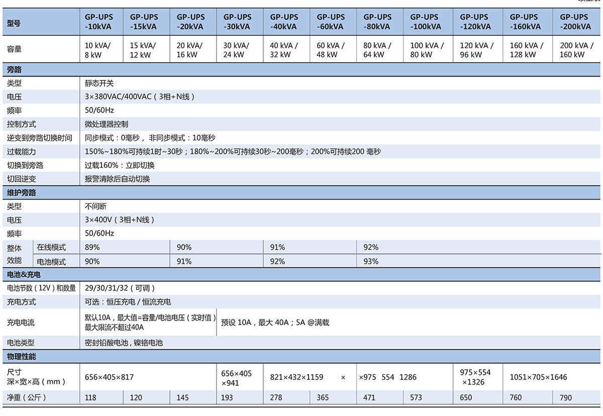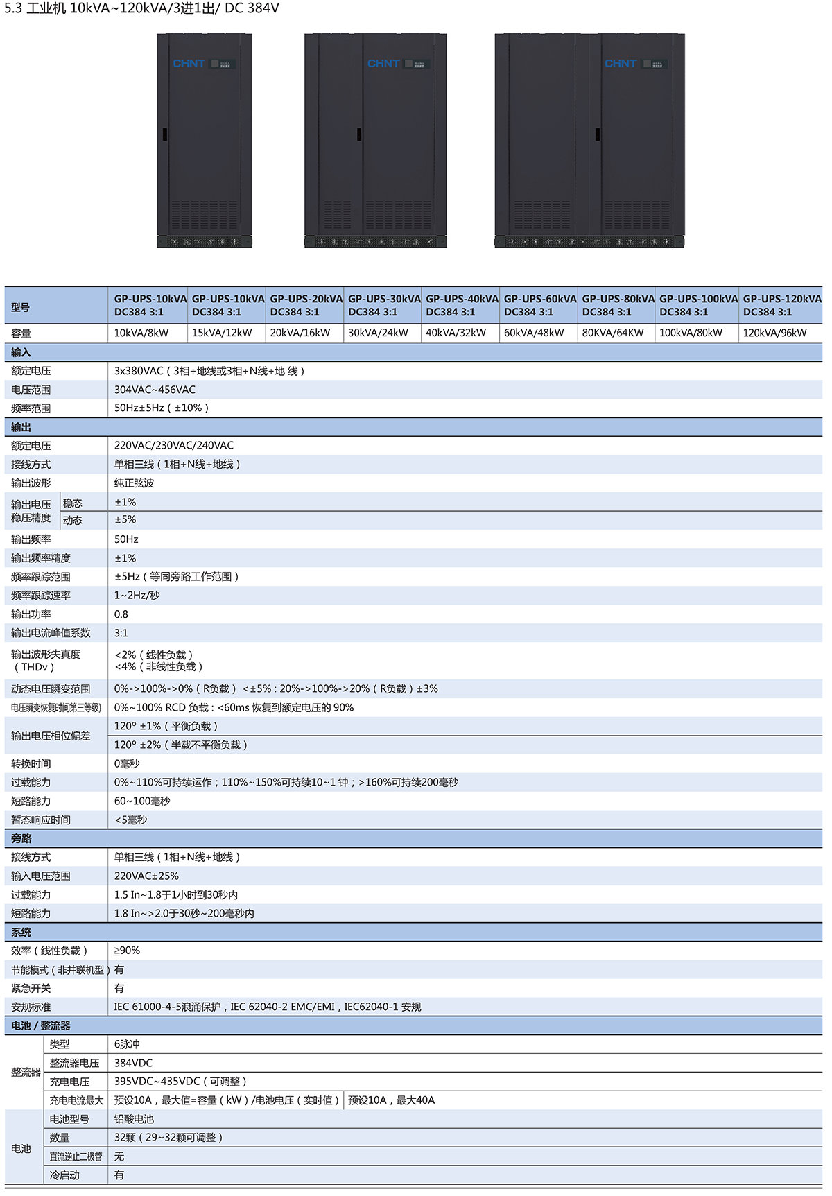 GP-UPS系列产品内置隔离变压器相比HP-UPS系列产品而具有抗高频干扰能力强、抗过载能力强、能有效降低零地电压、高可靠性的明显优势。本系列UPS可为中大型网络、数据中心、大楼集中供电、工业厂矿等应用场合提供可靠的动力供给。