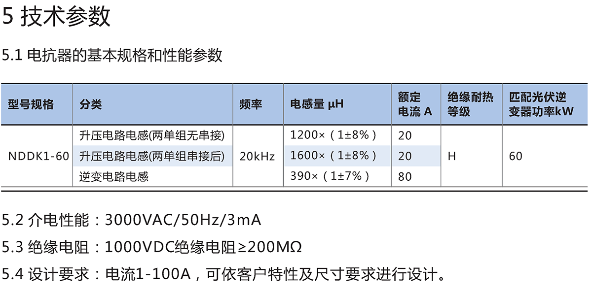 NDDK1-60光伏逆变电抗器是我公司自主研发的拥有自主知识产权的产品,主要应用于光伏逆变器、轨道交通、新能源汽车、UPS等各种逆变电源中起储能、升压、滤波、PFC作用等。