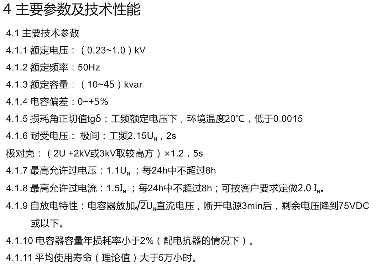 符合标准:GB/T 12747.1-2017、IEC60831-1:2014;GB/T 12747.2-2017、IEC60831-2:2014。