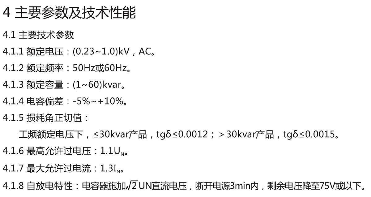 符合标准:GB/T 12747.1-2017、IEC 60831-1:2014;GB/T 12747.2-2017、IEC 60831-2:2014。