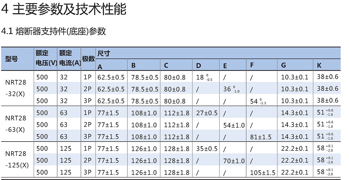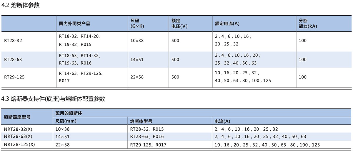 NRT28系列熔断器底座可与RT28-32、RT28-63、RT29-125型熔断体配合使用(此型熔断器不推荐用于电容柜中,若用于电容柜中,建议用RT36型替代)。