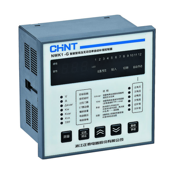 NWK1-G智能型低压无功补偿控制器与低压并联电容屏装置配套,适用于额定电压380V、交流50Hz的配电系统中,控制并联电容器自动投切,改善电压质量,减少电能损失。