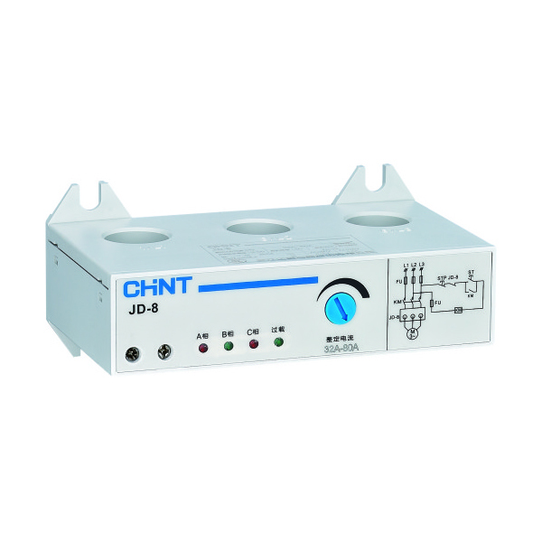 JD-8电动机综合保护器主要用于交流频率50Hz,额定绝缘电压690V以下的电力系统中作低压三相交流异步电动机的过载、断相等故障保护。保护器通常与交流电动机回路中的接触器配合使用。