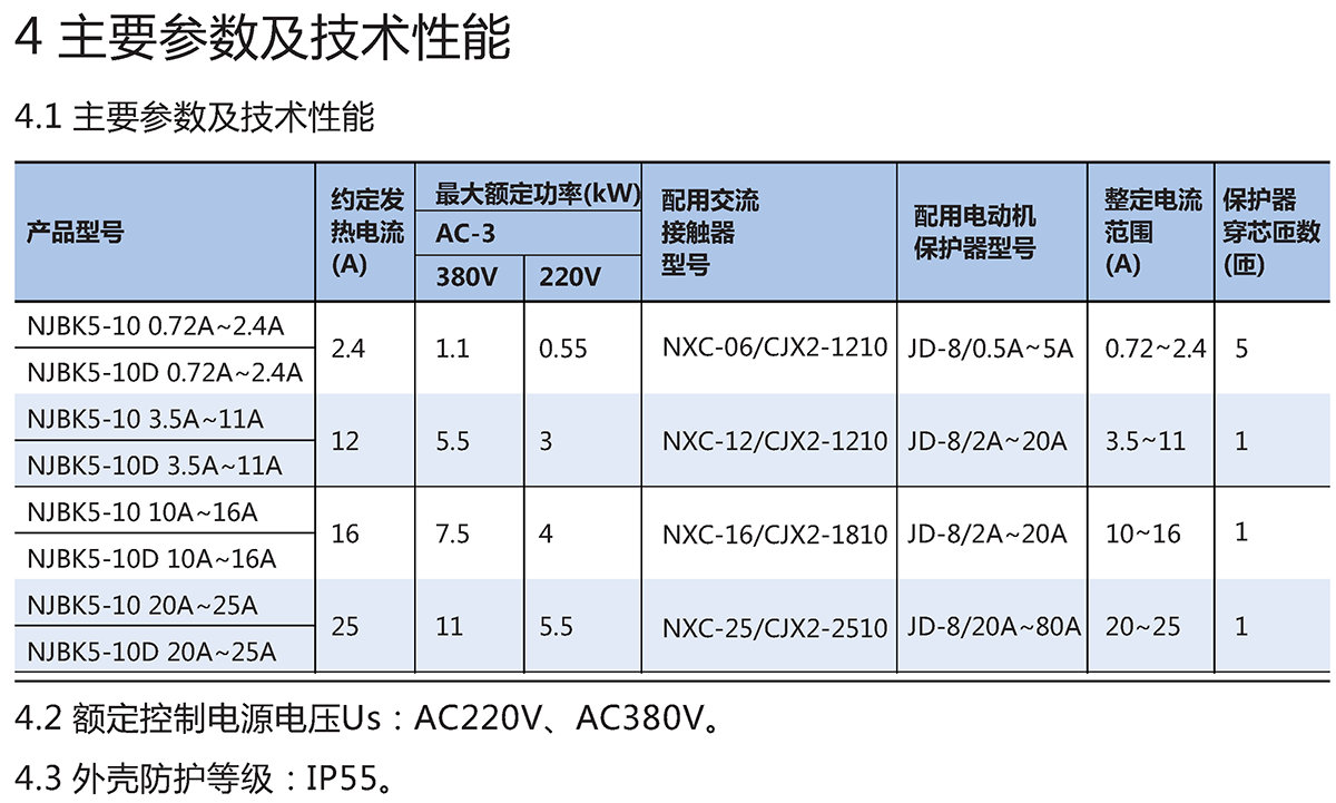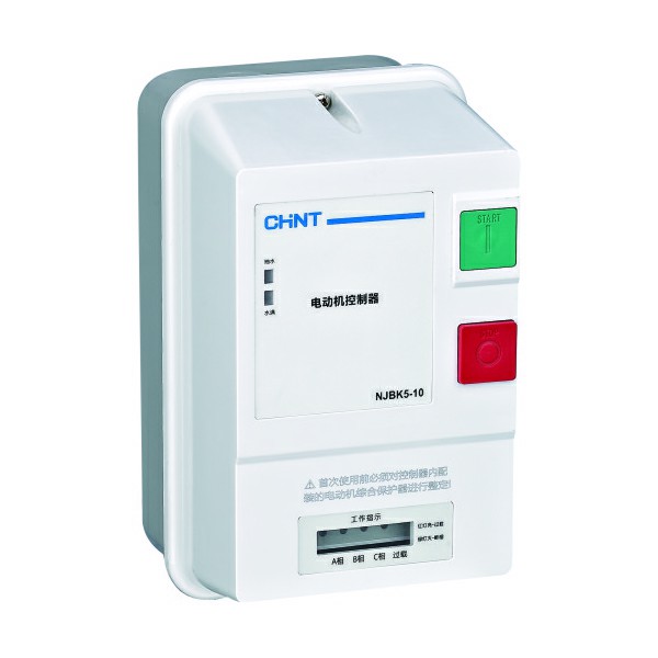 NJBK5系列电动机控制器(以下简称控制器),主要适用于交流50Hz、额定工作电压至380V、额定控制功率至11kW(电流至22A)的电路中,控制水泵或电动机的直接起动与停止,对电动机的过载和断相起保护作用,也可实现民用水塔、蓄水池等场合的液位自动控制之用。