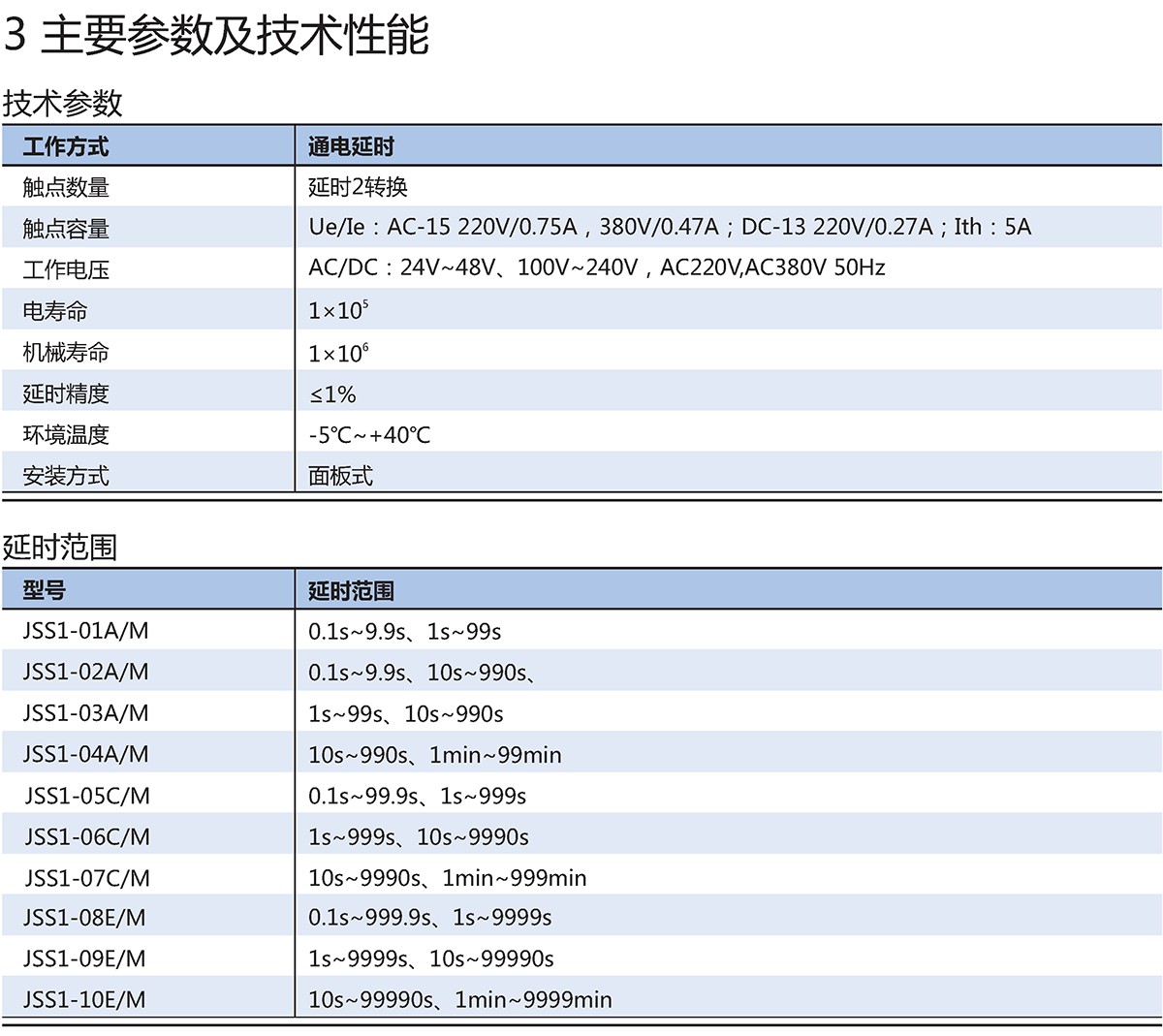 JSS1系列时间继电器适用于交流50Hz,额定控制电源电压380V及直流额定控制电源电压220V的控制电路中作延时元件,按预定的时间接通或分断电路。