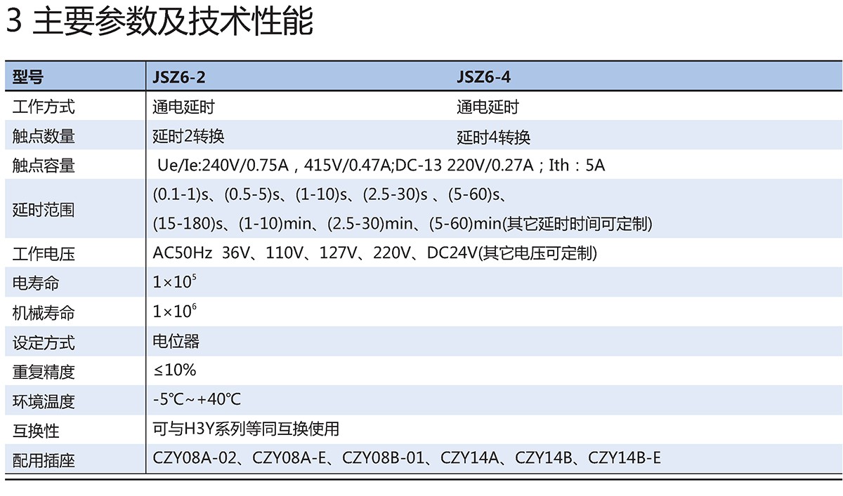 JSZ6系列时间继电器具有体积小、重量轻、结构紧凑、延时范围广、延时精度高、可靠性好、寿命长等特点,适用于机床自动控制,成套设备自动控制等要求高精度,高可靠性的自动控制系统作延时控制元件。