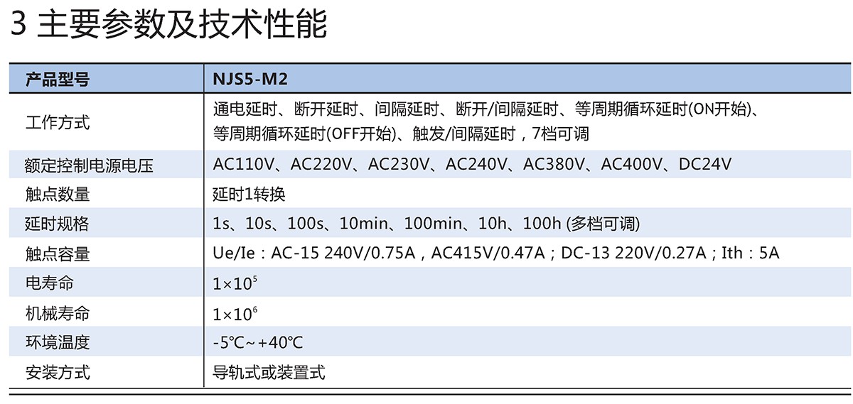 NJS5-M2时间继电器主要用于交流频率50Hz,额定控制电源电压至400V及直流额定控制电源电压至24V的控制电路中作为时间控制元件,按预定的时间接通或分断电路。
