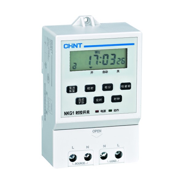 NKG1 时控开关是以时间为控制单元的控制元件,能根据用户设定的时间,自动打开和关闭各种用电设备的电源。控制对象可以是路灯、霓虹灯、广告招牌灯、生产设备、广播电视设备等一切需要定时开启和关闭的电路设备和家用电器。