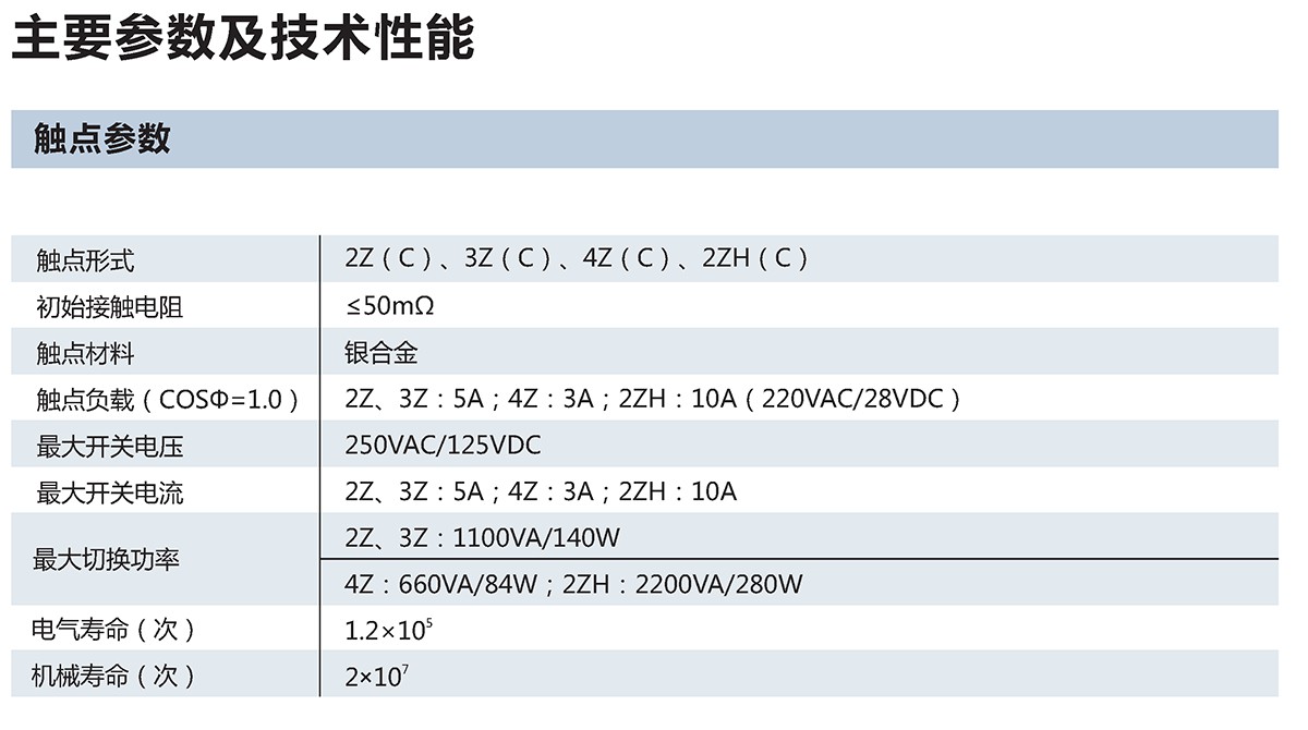 2Z、3Z、4Z、2ZH四种触点形式:交/直流规格齐全;高接触可靠性,可用于PLC控制;透明防尘罩封装;备有配套插座;可选带状态指示灯的规格。