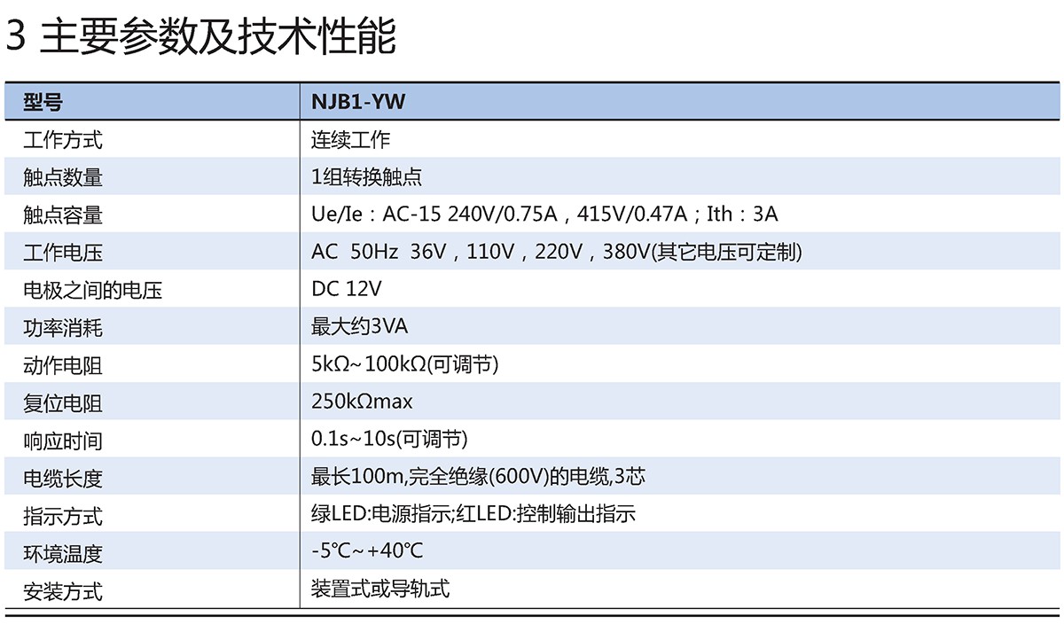 NJB1-YW液位继电器适用于工业设施和设备、民用水塔、高位水箱、地下蓄水池等场合的水位自动控制之用。