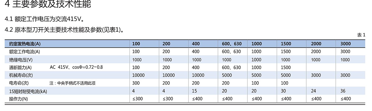 1.5 装有灭弧室的开关可以切断适当的电流负荷,其他系列刀开关只作隔离开关使用。