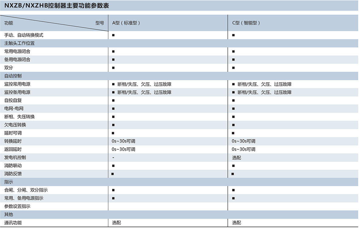 NXZB/NXZHB系列自动转换开关电器适用于交流50Hz,额定电压400V/415V及以下,额定电流至63A三相四线双路供电电网中,自动将一个或几个负载电路从一个电源接至另一个电源,以保证负载电路的正常供电。