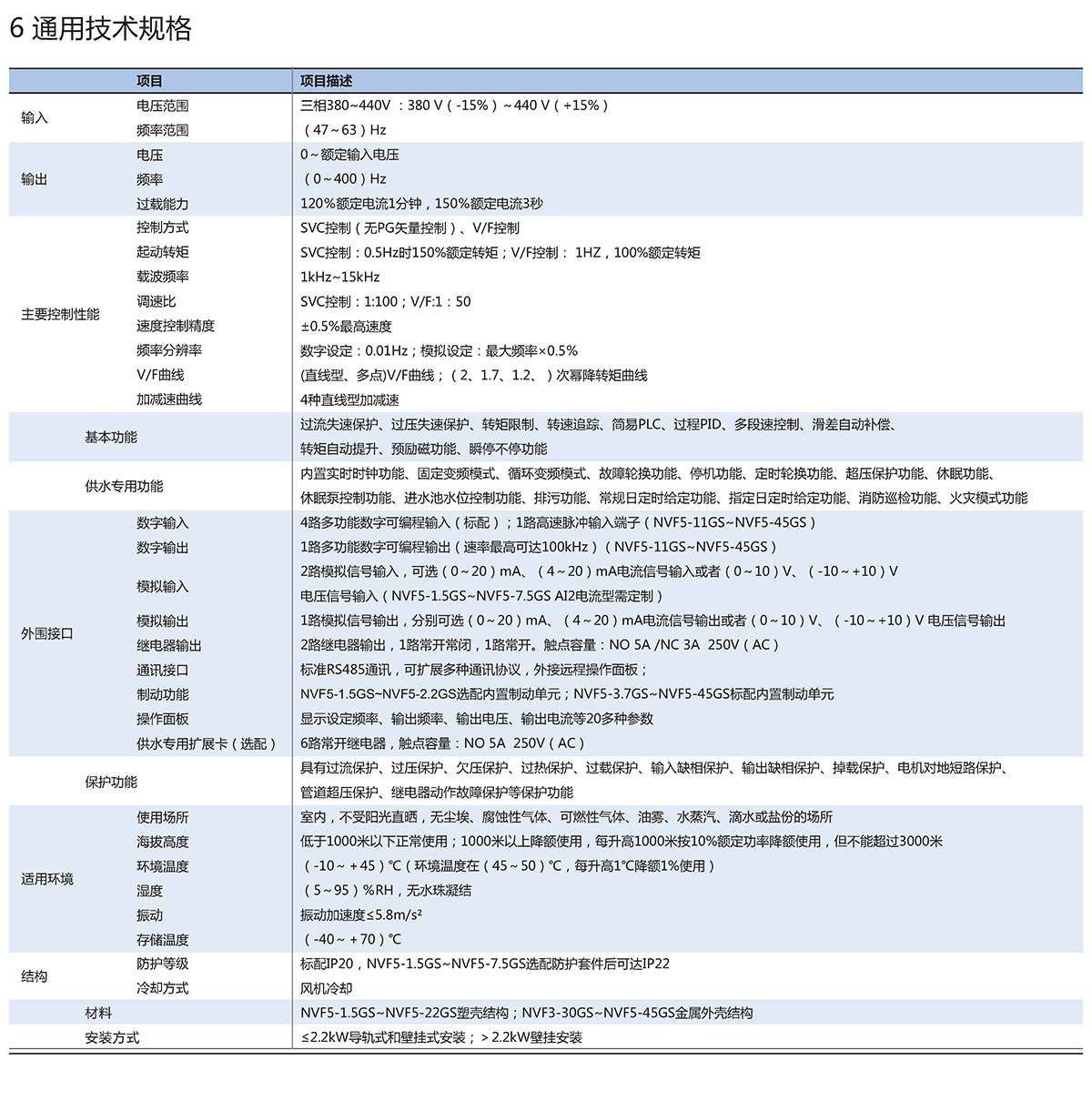 NVF5-GS系列供水专用变频器是正泰公司为供水行业量身打造的一款小体积、高性价比的供水专用变频器。该产品支持固定变频模式、循环变频模式、软停和急停功能、超压保护功能、休眠功能、休眠泵控制功能、进水池水位控制功能、排污功能、火灾模式等功能。可选配供水专用扩展卡,内置实时时钟,除上述功能还具备定时轮换功能、常规日定时给定功能、指定日定时给定功能、消防巡检等功能,最多可同时控制9台泵(固定变频模式)。
