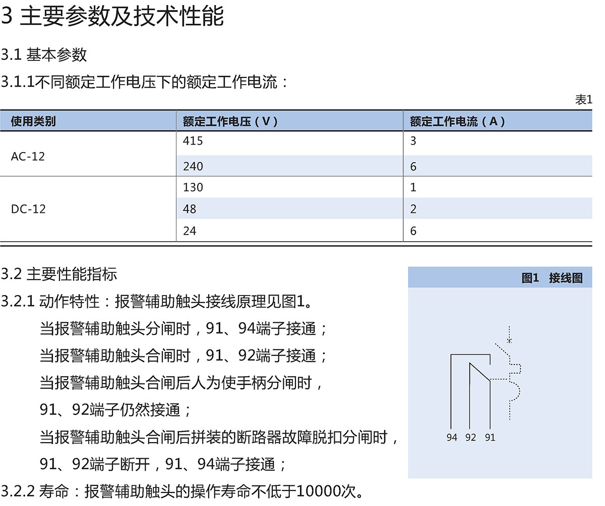 XF9J报警辅助触头适用于约定发热电流至6A,交流额定电压至415V或直流额定电压至130V的线路中,其与NB1小型断路器或NB1L剩余电流动作断路器拼装,作远距离断路器通断的信号指示之用。