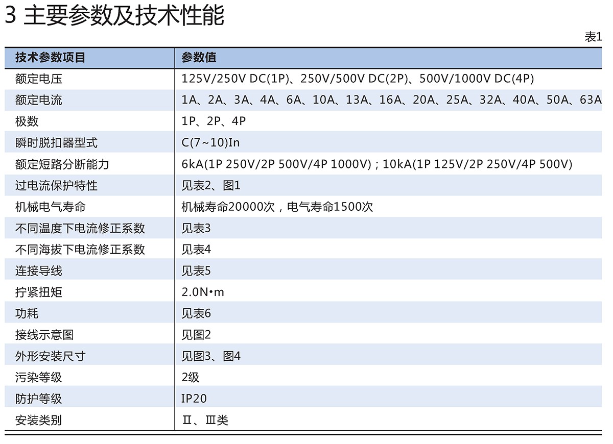 NB1-63DC直流断路器用于直流额定电压至1000V,额定电流至63A线路中,起过载和短路保护之用,也可以作为线路的不频繁操作转换之用。