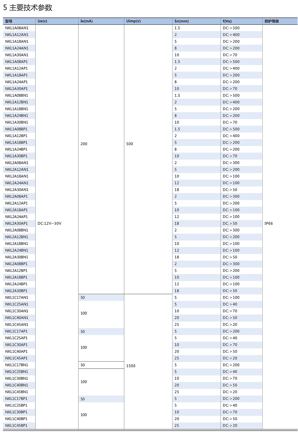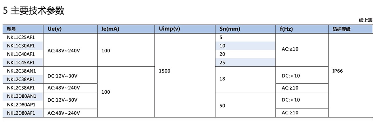 NKL电感式接近开关是一种毋需与运动部件进行机械接触而可以操作的位置开关,当物体接近开关的感应面到动作距离时,不需要机械接触及施加任何压力即可使开关动作,从而驱动交流或直流电器或给计算机装置提供控制指令。它即有行程开关、微动开关的特性,同时具有传感性能,且动作可靠,性能稳定,频率响应快,应用寿命长,抗干扰能力强等、并具有防水、防震、耐腐蚀等特点。开关使用类别:AC-140,DC-13。